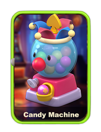 Candy Machine:For every 5 gold coins,+2 Mult.Selling this Card grants a Candy Pile with a one-time amazing effect.